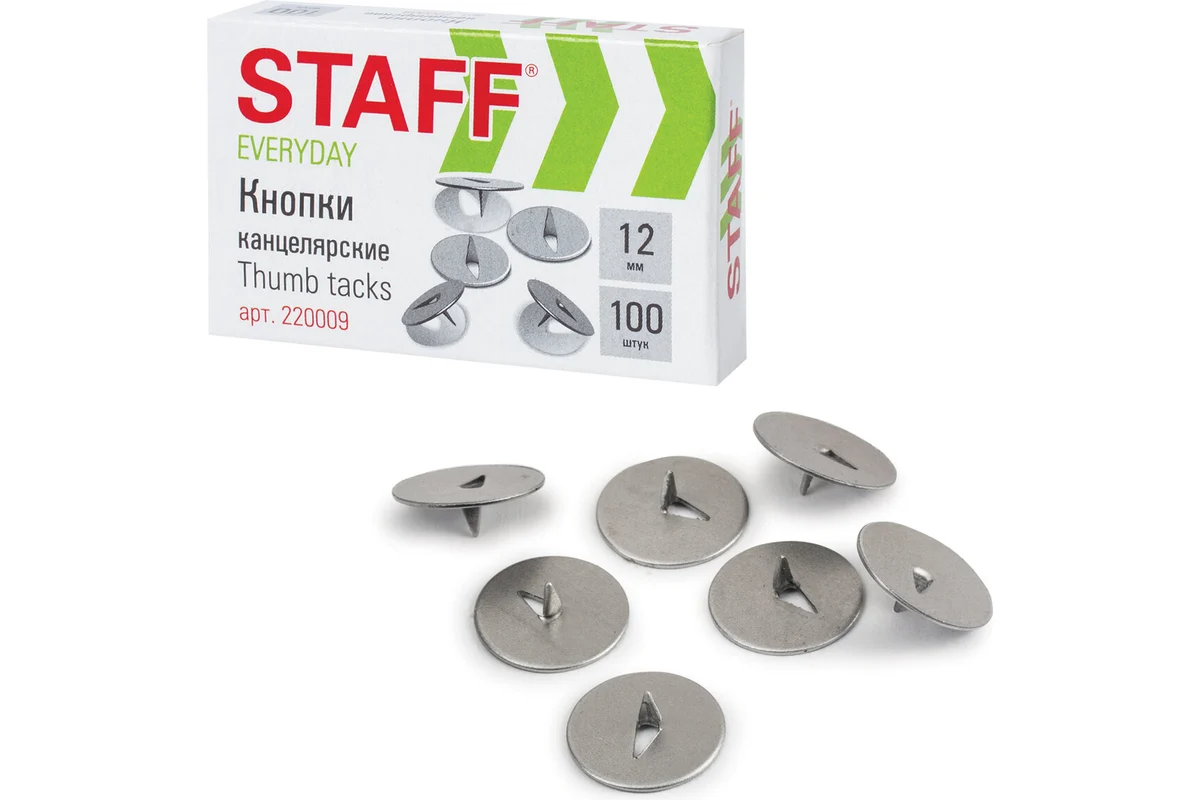 Канцелярские товары: Кнопки канцелярские 12мм*100шт STAFF эконом